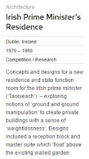 The intended site was in the north west corner of the Phoenix Park along the long diagonal route of Chesterfield Avenue. The images are taken from zaha-hadid.com/architecture/irish-prime-ministers-residence/. Below them is the description of the entry by the practice.